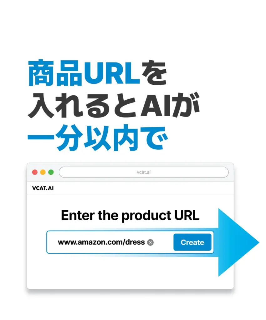 VCAT AIは、商品URL情報だけでマーケティング動画やバナー画像をAIが自動的に分析・生成する独自の技術力が自慢です。