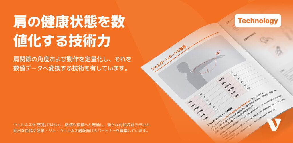 ガイド動画に従って動くだけで、AIが肩の状態を分析します。ユーザーはそこから作成されたカスタマイズ型のウェルネスレポートを通じて、自身の肩の状態を認識・管理することができるのです。