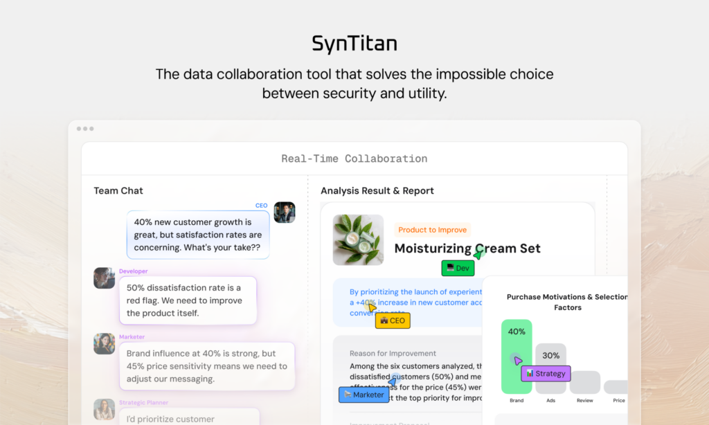 これまで個人情報と規制により利用できなかったデータを、弊社の合成データとプライバシー保護技術を通じて外部の巨大モデルとも安全に活用できるよう、新しい環境をつくっていくことが私たちの使命です。