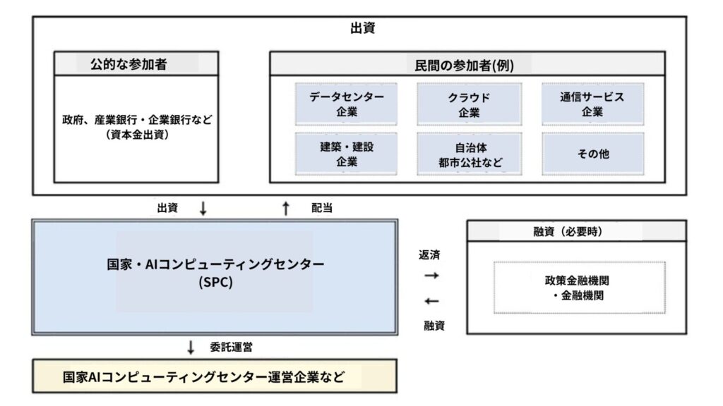 この事業は、データセンターの構築・運営企業とAIコンピューティングサービスの構築・運営企業が必ず参加する必要がある。