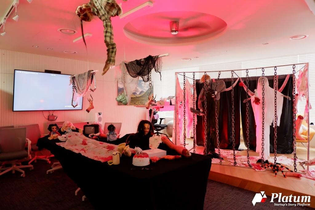 Hyperconnectが核心的価値とする「One team」、自分のチームだけでなく、会社レベルで意味を考えて働くことがハロウィーンのイベントで実践されていたわけだ。10月28日から30日までは社員対象の「ハロウィーンウィーク」が設けられた。ハロウィーンコスチュームコンテスト、社内会議室を活用した放脱出ゲーム、クレーンゲーム寄付イベントなどが開かれた。私が訪れた翌日の11月1日には、社員の家族と知人を招待した「ハロウィーンホームカミングイベント」が予定されていた。フォトブース、クレーンゲーム、ポップコーン製造機、モール人形作り、社内クイズセッションまで。同じオフィスに勤務するTinderソウルとMatch Group AIの社員も一緒に参加した。