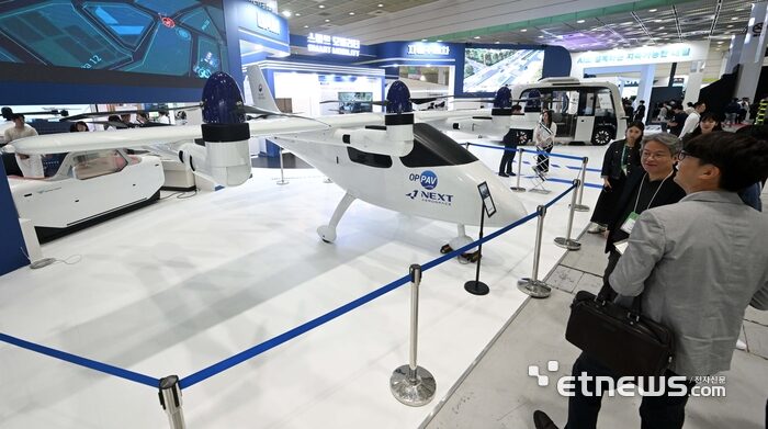 ソウル市とWeGOが主催し、ソウルAI財団が主管した「Smart Life Week2025」が、「人のためのAI、未来を開くスマートシティ」をテーマに先月30日から、ソウル江南区のコンベンションセンターCOEX(コエックス)で3日間にわたって開かれている。スマートモビリティのブースで、観覧客が有無人兼用垂直離着陸機を見ている。