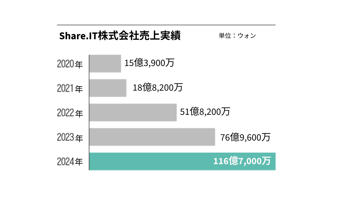 今年の予想売上高は100億ウォン(約10.8億円)ほどになります。1~3四半期とも四半期黒字を達成し、今年は初めて年間黒字を期待しています。