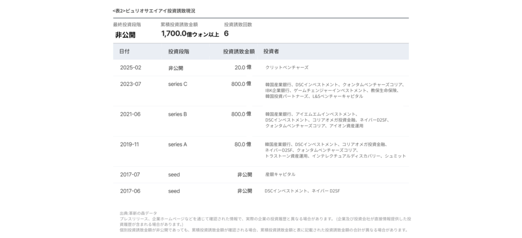2017年創業当時約40億ウォン(約4.4億円)水準に過ぎなかった企業価値が2025年2月資金調達議論時点では約8,000億ウォン(約880億円)と評価されている。わずか6年で企業価値が200倍成長したことで、Series-B投資が行われた2021年以降も急な成長が続いたことを示している。