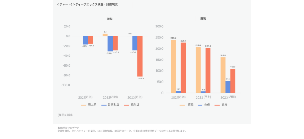 DEEPXは2021年211億ウォン(約32.21億円)規模のSeries-B資金調達を通じてオンデバイスAI半導体開発に本格的に乗り出した。一方、この時期以降、DEEPXの財務的成長は一般的な意味の「成長」とは多少距離がある。