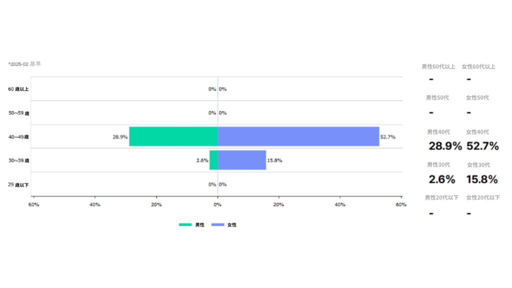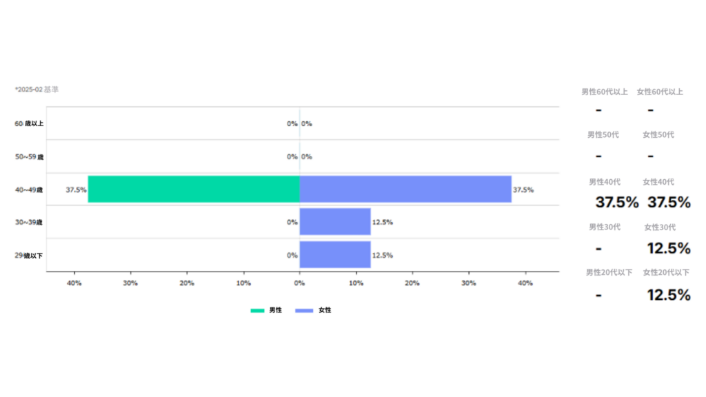 40代の消費者タイプが75%でした。性別に関係なくまんべんなく消費者が存在していました。