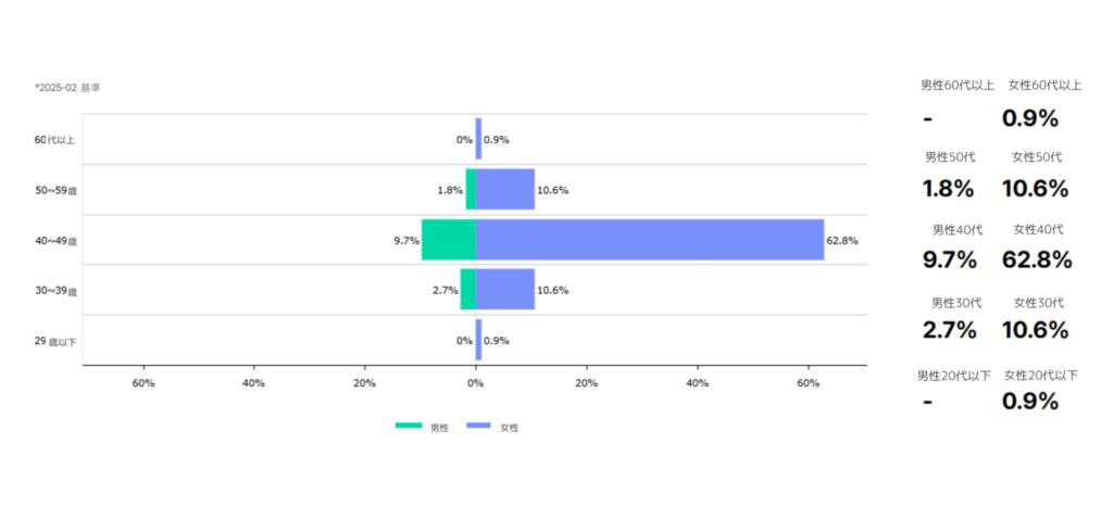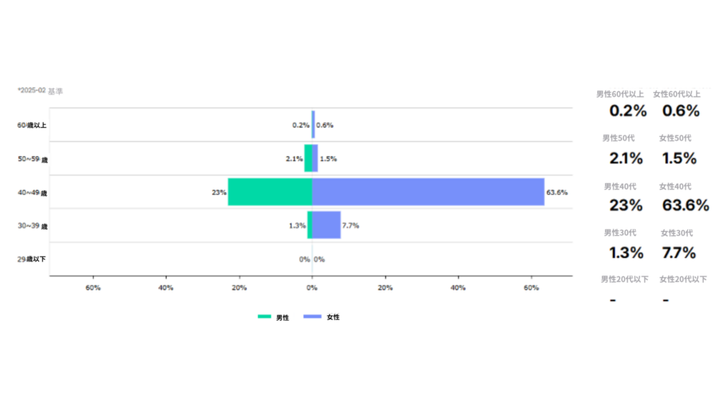 40代の消費者タイプが72.5%でした。男性に比べて女性の消費者の方が多いです。