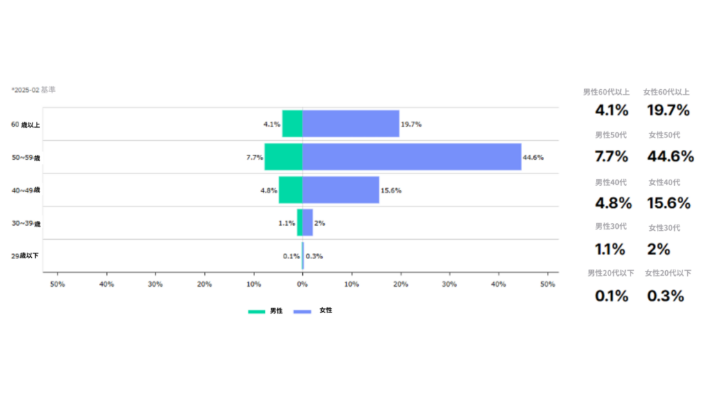 60代以上の消費者タイプが50%でした。女性に比べて男性消費者が圧倒的に多くなっています。