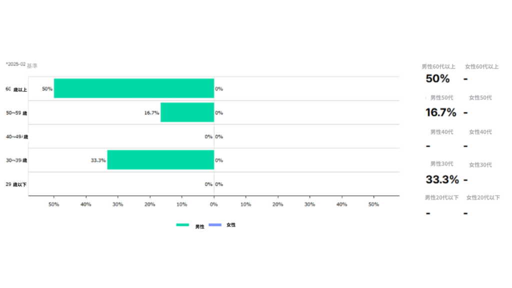 60代以上の消費者タイプが50%でした。消費者タイプはすべて男性と集計されています。