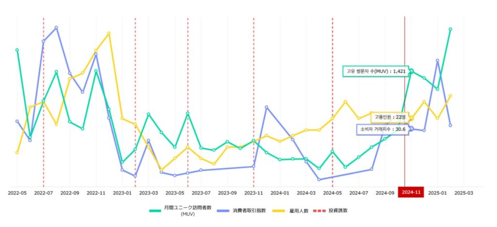 2021年の売上高67億ウォン(約7.1億円)、2022年の売上高172億ウォン(約18.2億円)、2023年の売上高300億ウォン(約31.8億円)、2024年の売上高430億ウォン(約45.6億円)と毎年継続的に成長しており、2027年に企業公開をすることを目指しています。