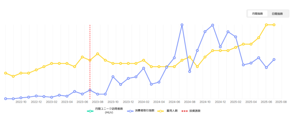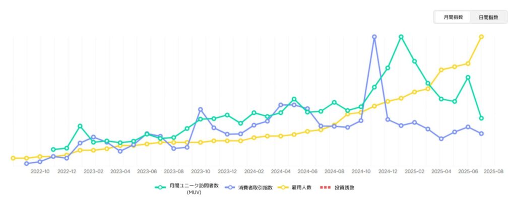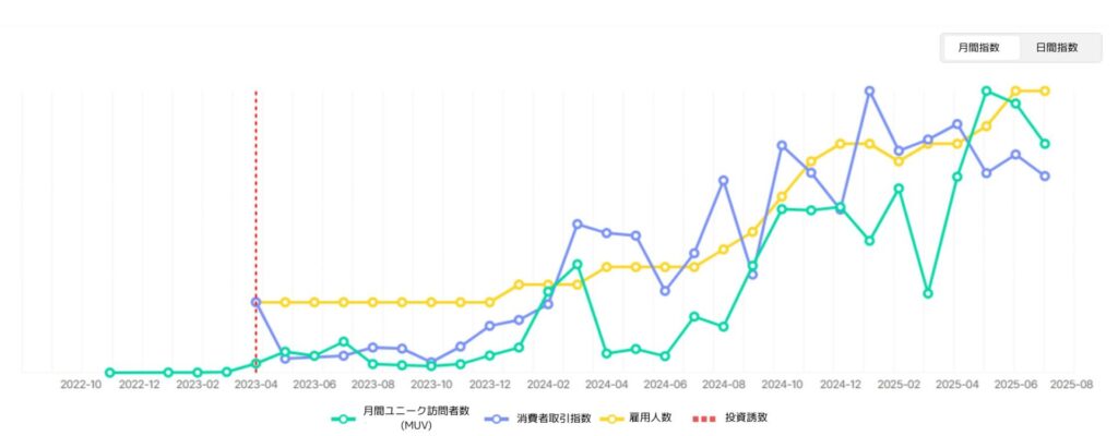 [▲固有訪問者数の成長、▲雇用人員の成長、▲消費者取引指数の成長、▲売上高の成長、▲営業利益の成長]