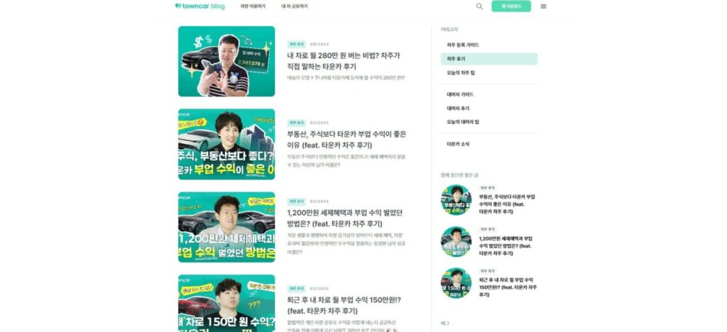 現在towncarは、オーナーが得ることができる期待収益と恩恵に重きを置くことで関心を集め、実際にtowncarのオーナーとなる過程で生じる可能性のある心理的障壁をコンテンツで解消しながらオーナーを徐々に増やしていきました。アプリ、公式ブログやYouTubeなどでtowncarのこのような努力を垣間見ることができます。