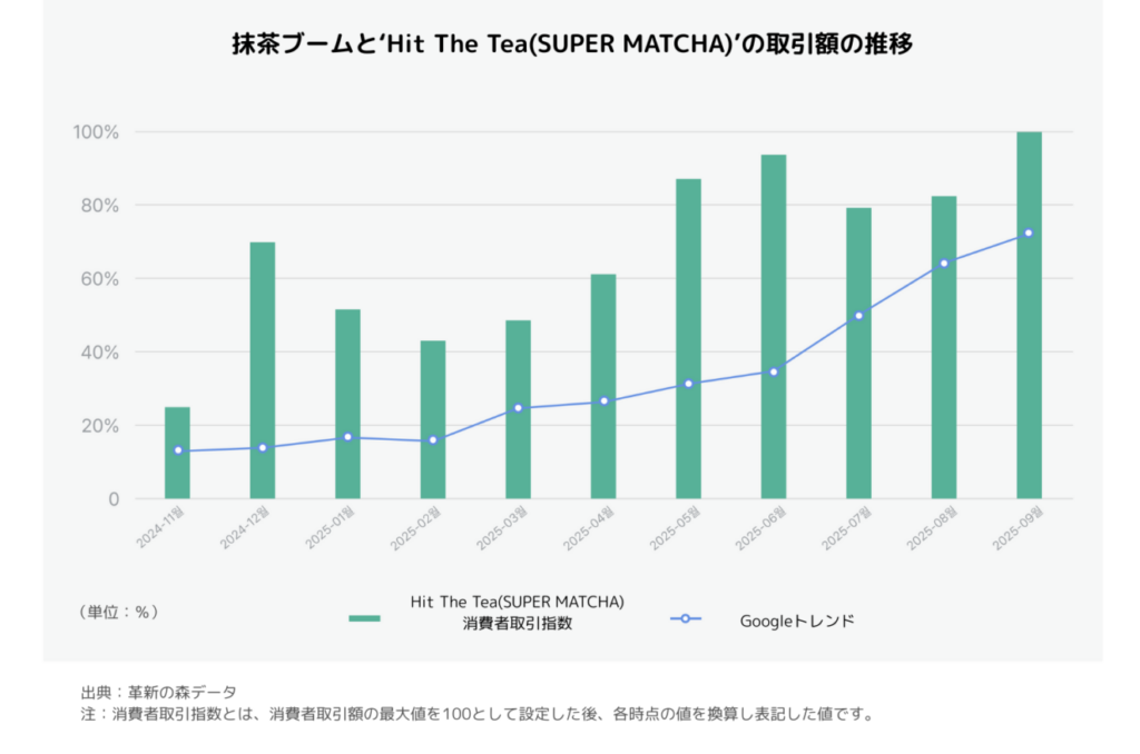 韓国では、今年「抹茶」が食品分野のみに留まらず美容、ファッションに至るまで、産業全体で強力なトレンドを形成し、1年をリードしました。実際にGoogle トレンドによると、昨年12月を起点に2025年の1年間「抹茶」関連検索語は着実に右肩上がりの成長傾向を記録し、そのグローバルな波及力を立証しました。