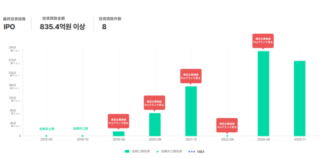INNOFORESTのNota詳細ページ上の資金調達履歴を見てみると、設立以後のPre-IPO段階に至るまで着実に数回の資金調達を進め、開発されているソリューションの技術力を継続的に認められてきた歩みを見ることができます。