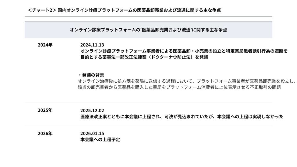 では、オンライン診療が法制化された2026年1月になぜ「ドクターナウ防止法」が論争となっているのでしょうか。