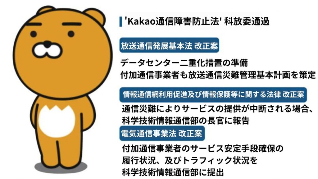 今回の火災トラブルは、技術的問題を超えて政策的矛盾とガバナンスの失敗から生まれました。政府は、いわゆる「Kakao通信障害防止法」を通じて民間プラットフォーム事業者にシステム二重化義務と違反の際の課徴金を課しながらも、国の核心行政網には同じ基準を適用せず、投資も行っていなかったのです。それが、民間よりも重要な公共インフラの脆弱性を放置し、そのまま問題を大きくした決定的な原因でした。