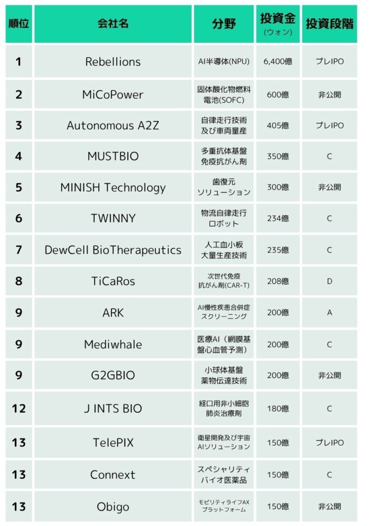 韓国スタートアップ資金調達TOP15