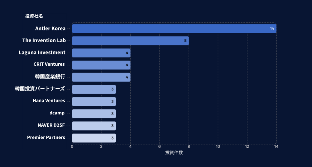 最も多くの投資を行ったのはANTLER KOREAで14件